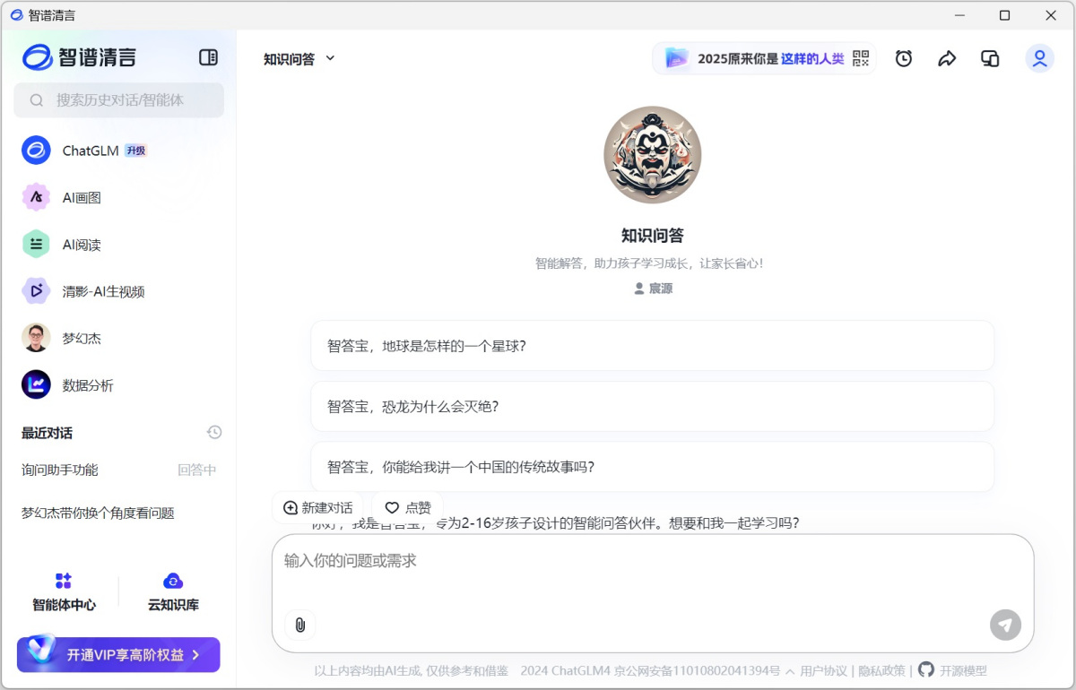 1、实时回答科技、历史、文化等全领域问题,支持学术研究与日常咨询。