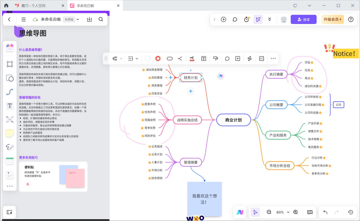 ●白板汇聚灵感——无限画布,让创意与思路高效汇聚