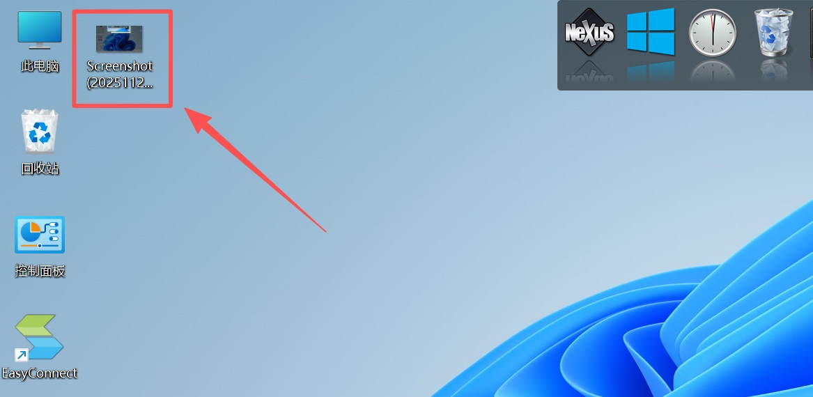 步骤1、打开Nexus,点击上端任务栏中的【桌面截图】,出现数字
