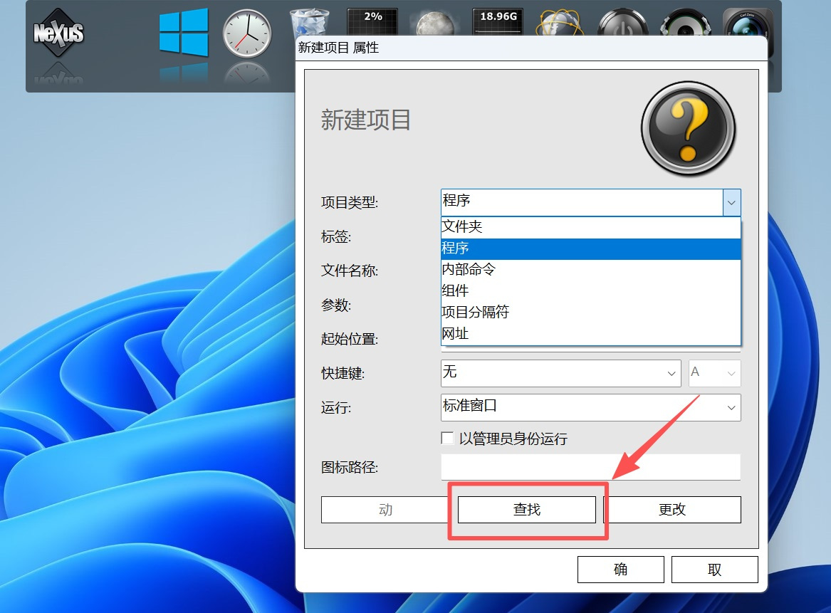 步骤2、项目类型选择【程序】,然后点击【查找】