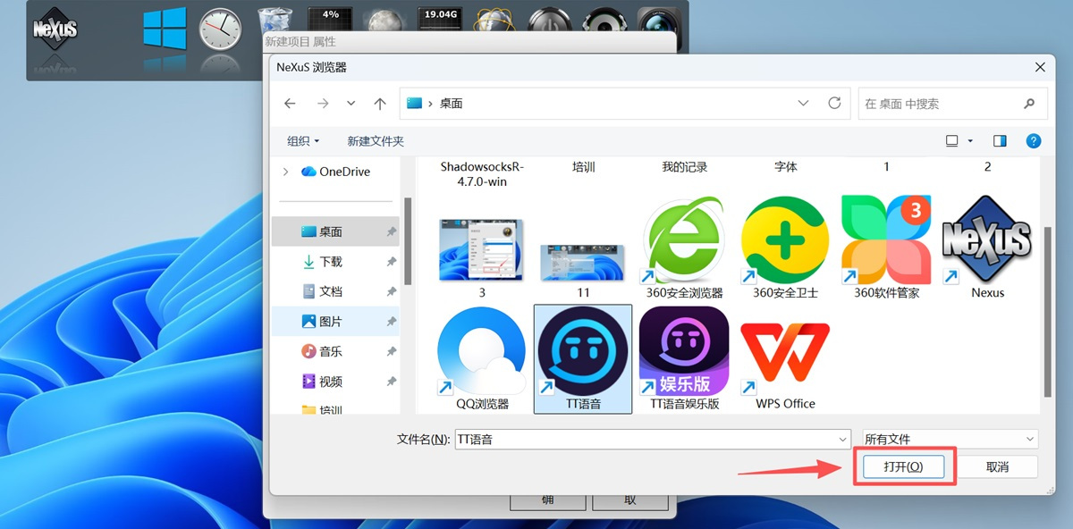 步骤3、选择您想添加在停靠栏的软件,点击【打开】