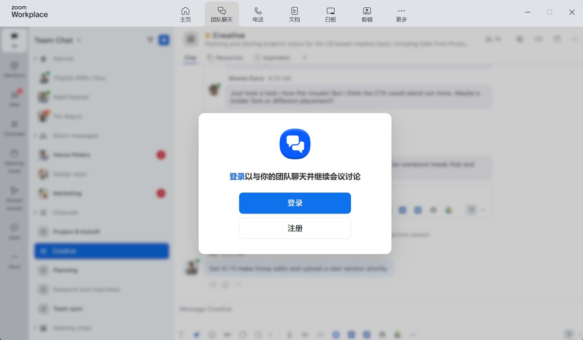 符合条件的付费计划的付费用户(可能不适用于选定的垂直行业和区域客户)可能能够在团队聊天界面中看到 Zoom AI Companion 聊天撰写和话题摘要选项,即使帐户管理员尚未启用它。如果这些选项可见但未启用,用户可以请求管理员启用。帐户管理员可以通过 Web 设置控制这些启用选项的可见性。默认情况下,这些功能将在团队聊天中对用户可见。