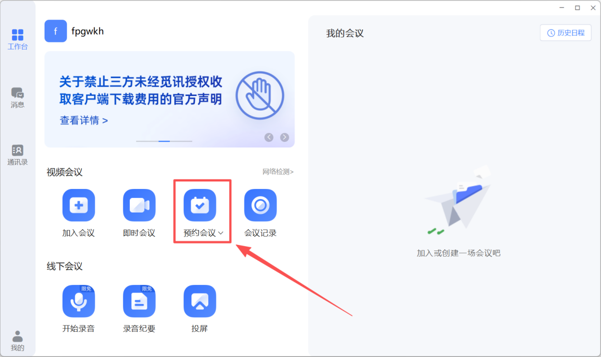 步骤1、点击【预约会议】
