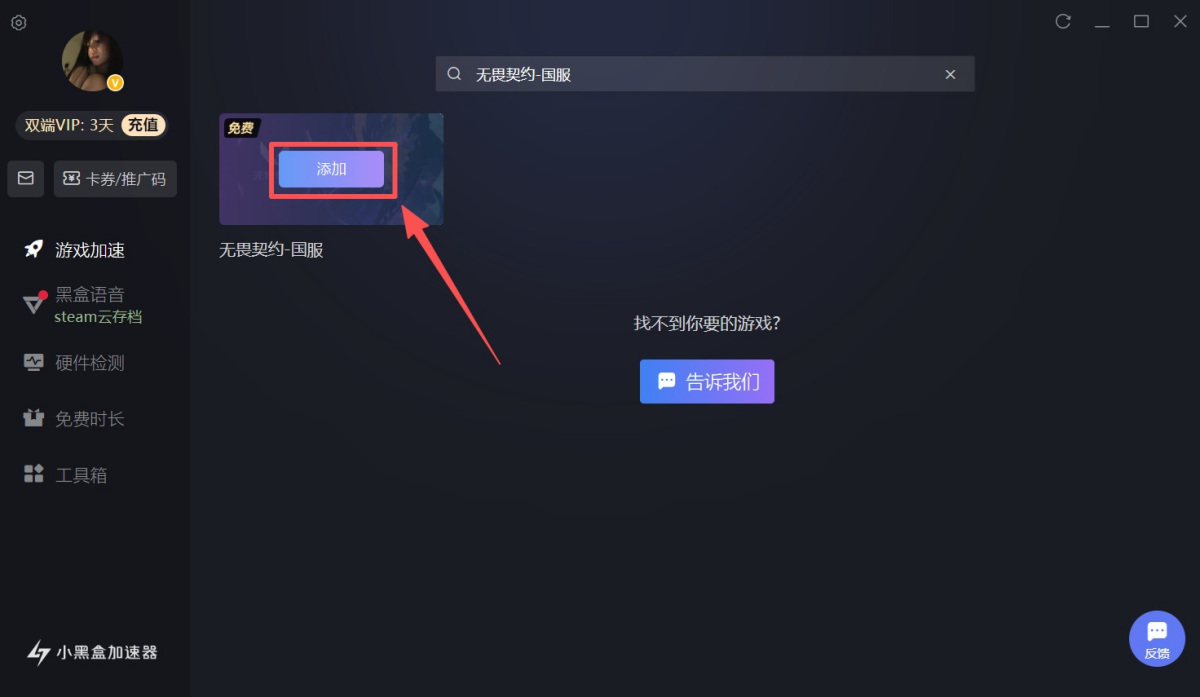 1、打开小黑盒加速器客户端,先点击左上角【头像】进行登录/注册。