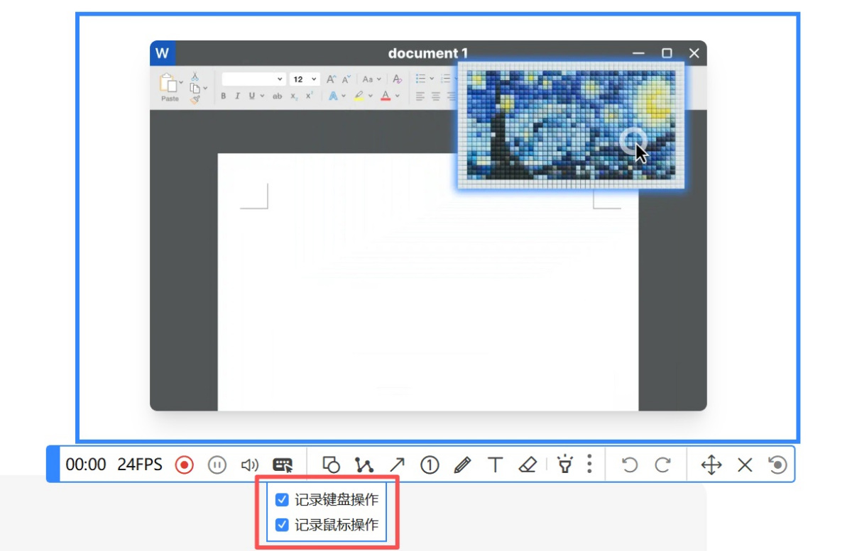 PixPin会员在使用Gif录制动图功能时,可以设置是否记录鼠标或者记录键盘的操作。