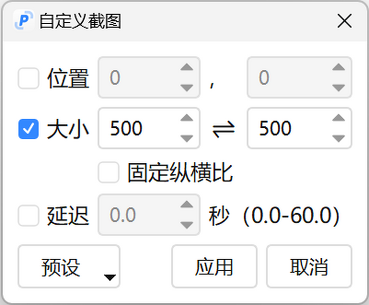 1、可以按下Alt+1进入自定义截图,设定截图大小之后勾选固定纵横比即可。