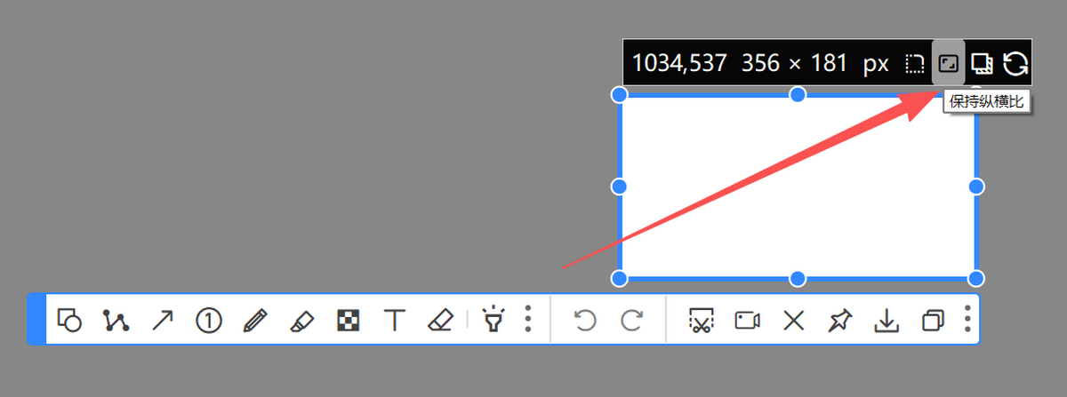 2、也可以在截图的时候点击固定纵横比按钮来在后续的调整中保持比例。