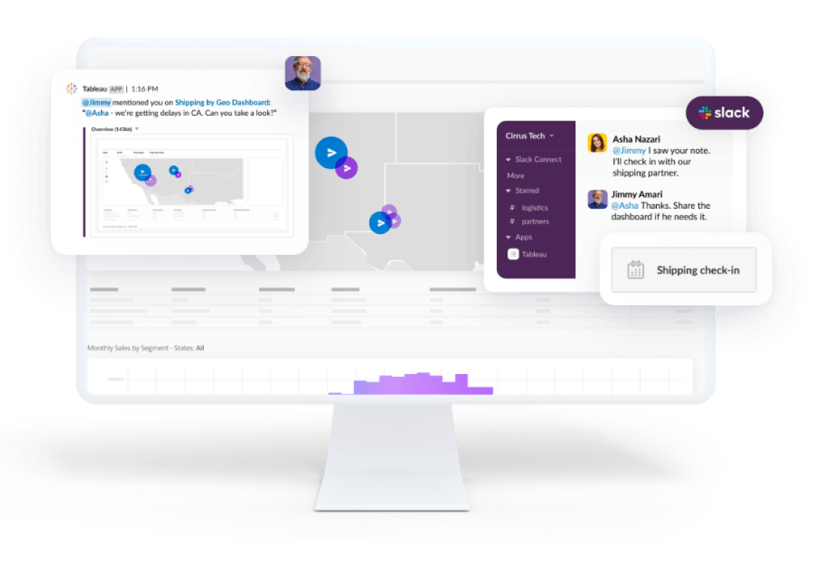 Tableau 提供了一个受管控的灵活环境,让团队能够根据可信的数据开展协作。与 Google Workspace、Microsoft Teams 和 Slack 等工具的集成让您可以接收通知,提出后续问题并打破孤岛,从而推动业务发展。利用 AI 和机器学习驱动的体验来提高生产力,因为它们可以引导用户找到自己需要的答案,并以用户能够理解的方式呈现。