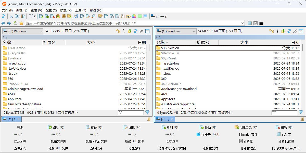 Multi Commander绿色版是一款功能强大的文件资源管理工具,功能与Windows资源管理器相似,但是Multi Commander设计更人性化,采用两栏式双面板操作界面,多标签浏览形式,并且在底部添加常见的功能按钮,方便用户使用。