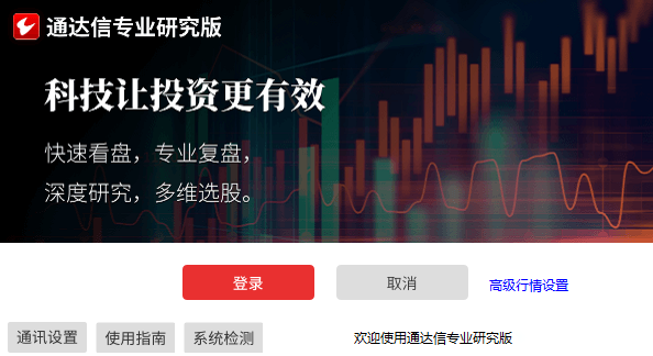 通达信专业研究版仅支持收费用户登录,附带券商交易,支持VIP交易