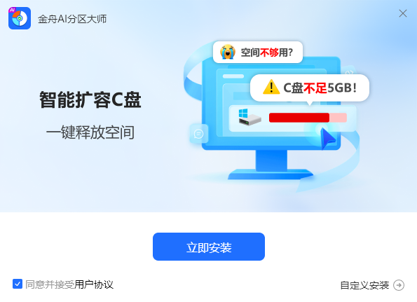 立即下载金舟AI分区大师,体验AI智能带来的磁盘管理!让您的电脑存储空间井然有序,运行速度快起来!