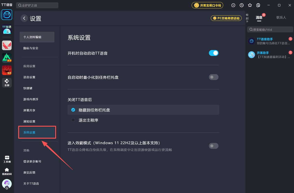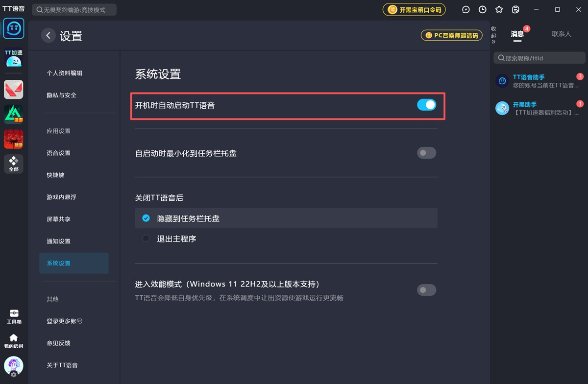步骤3、点击关闭【开机时自动启动TT语音】即可