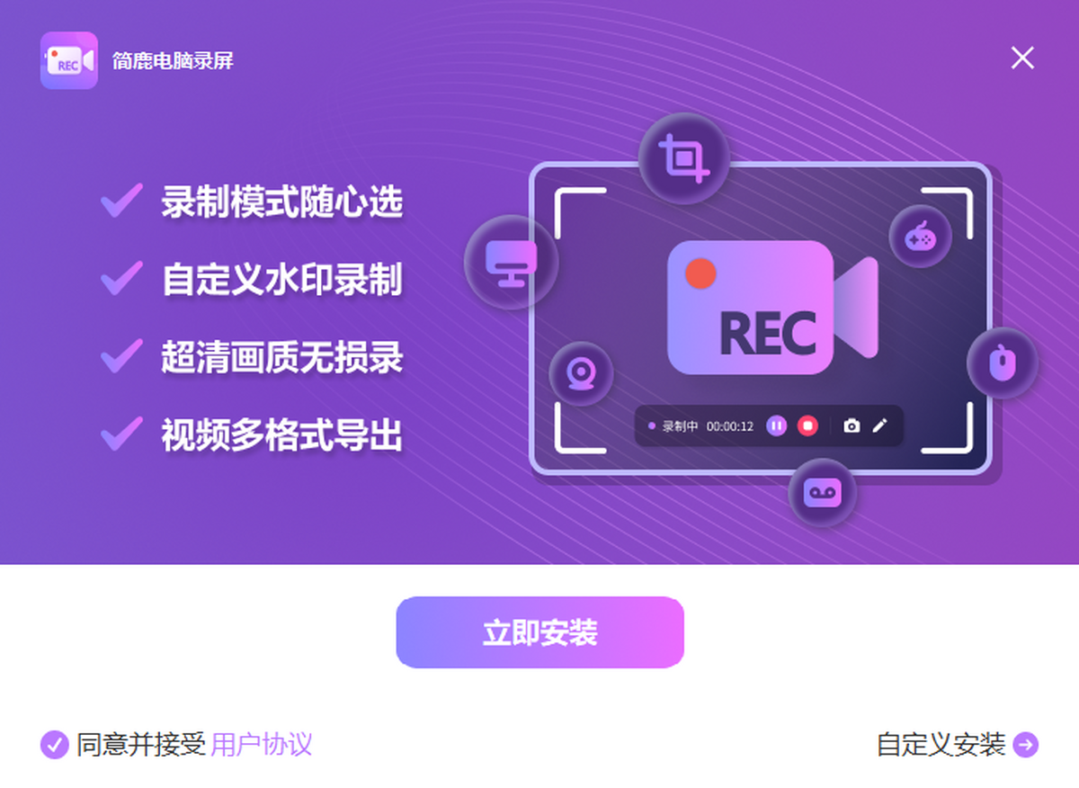 简鹿电脑录屏大师是一款适用于 Windows 系统的桌面屏幕录像软件,它支持PPT课件录制、游戏录像以及常规桌面操作录制;软件提供了全屏录制、区域录制、屏幕录制以及摄像头录制,在录制的视频中还可以加入修改的自定义水印,让你轻松录制在线课件、游戏、视频等等。
