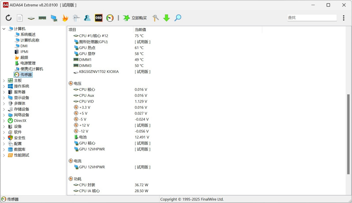 AIDA64 支持超过250种不同的传感器设备,用于测量温度、电压、电流和功耗。测量值可显示在系统托盘图标、OSD 面板、桌面小工具、罗技 G15/G19 游戏键盘 LCD 以及雷蛇 SwitchBlade LCD 上。