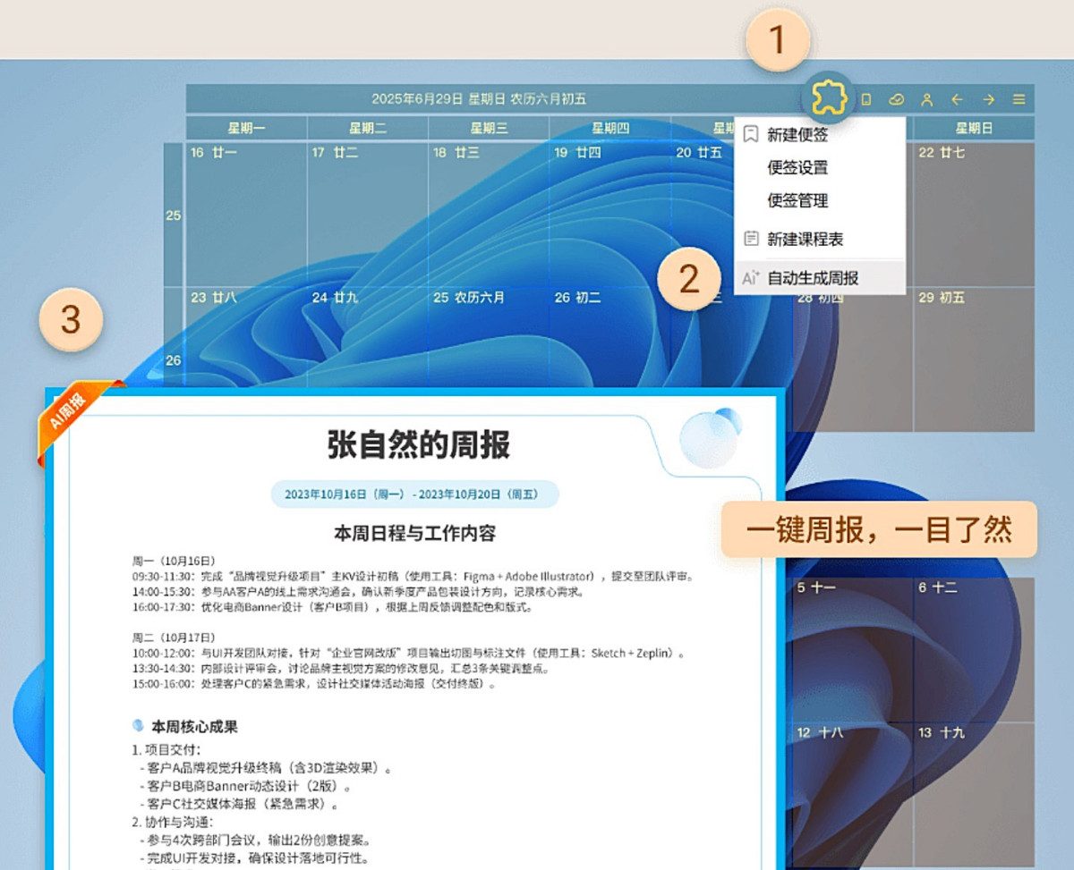 点击即可生成工作周报,简单高效。