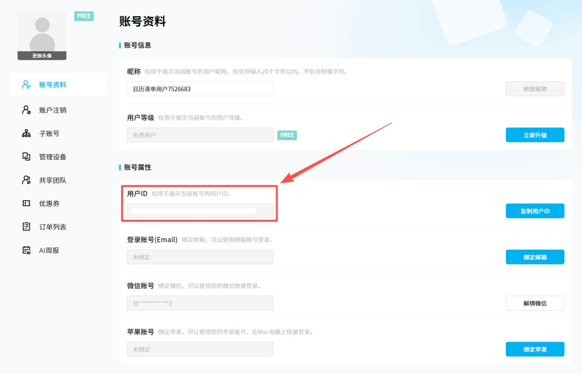 2、进入账号设置后即可看到【用户ID】