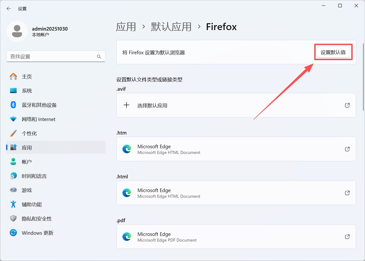 步骤3、弹出设置默认应用后,点击【设置默认值】