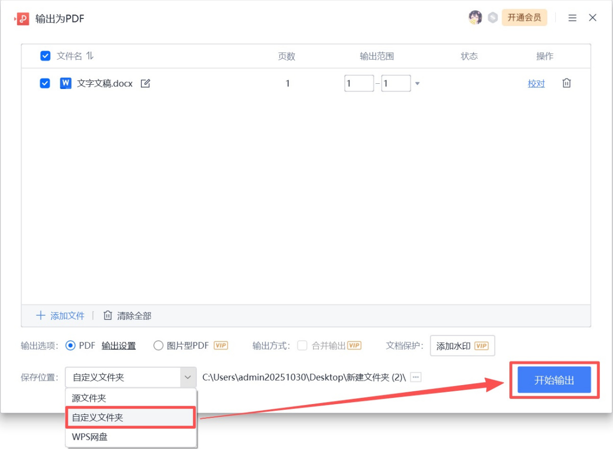 步骤2.自定义文件夹位置,点击【开始输出】即可