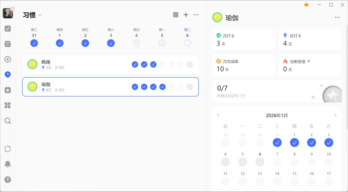 1、习惯打卡:详细的数据统计和打卡反馈,帮助你更加高效地养成良好习惯。