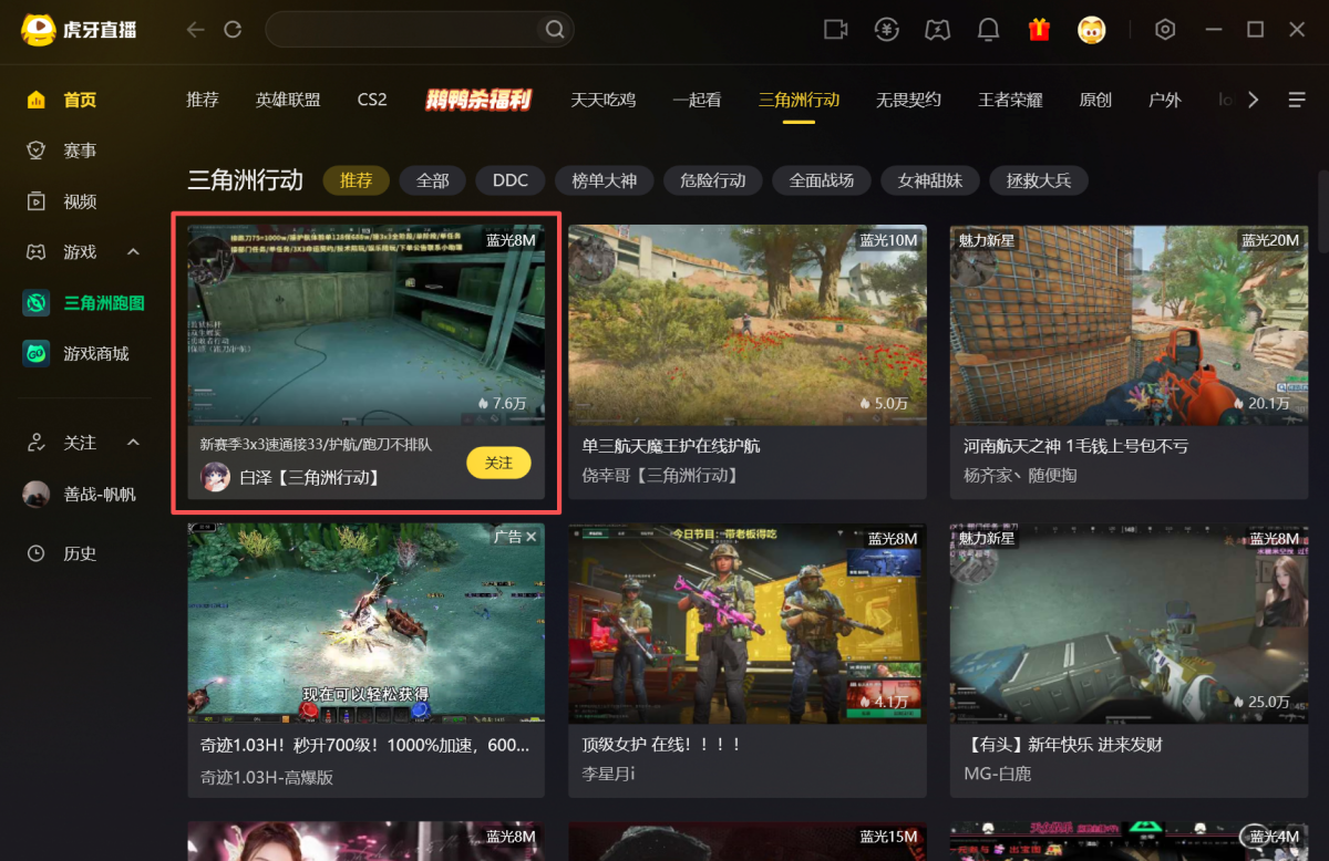 ●精品分类:英雄联盟、王者荣耀、CS2、一起看、三角洲行动、天天吃鸡、lol、云顶之弈、原创、无畏契约、主机游戏、户外、星秀、穿越火线、体育、炉石传说、和平精英、DOTA2、二次元