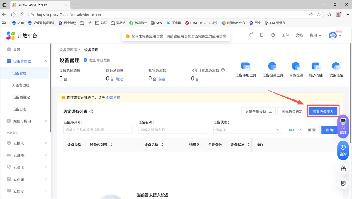 方式二:萤石开放平台控制台