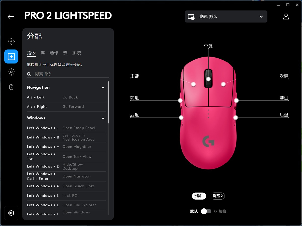 ●G SHIFT:按下 G SHIFT 键时,G SHIFT 层将激活,提供全新的一组热键和自定义选项。将其分配给任何罗技 G 设备(例如未使用的鼠标按钮),即可解锁高级键盘功能。