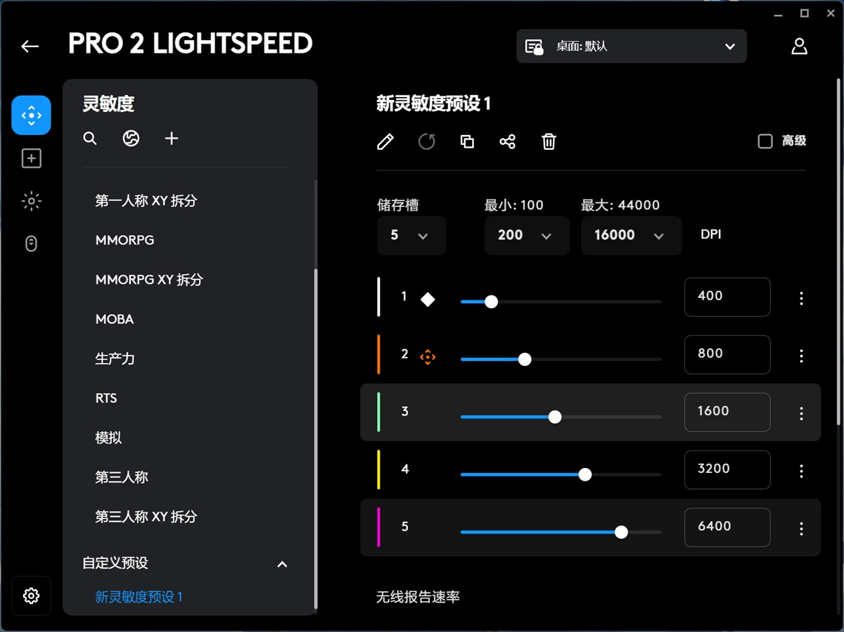●个性化性能:通过 G HUB 中的 HERO 2 传感器,您可以微调 X 轴和 Y 轴的 DPI、自定义抬升距离、针对不同鼠标脚垫高度优化追踪性能,并复制旧鼠标的灵敏度设置。此外,灵敏度页面支持升级至更高的回报率,包括 2 kHz、4 kHz 和 8 kHz。