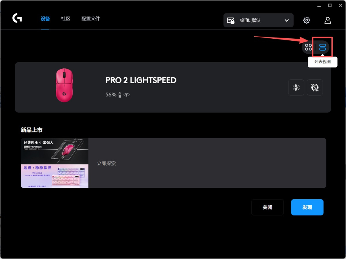 充分利用社区设置,体验 Blue VO!CE 和 KEYCONTROL 等高级功能。使用设备页面上的设置齿轮,以调整固件、电源及其他设备选项。要上传预设,请通过 G HUB 窗口中的配置文件图标登录或创建 Logi ID