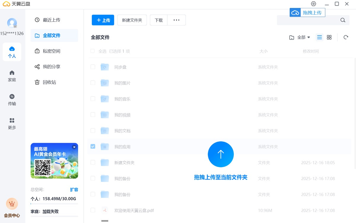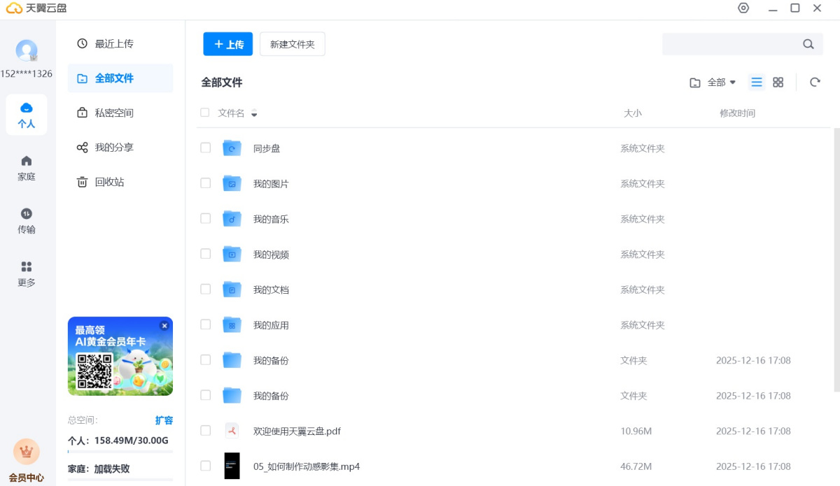 家庭共享,守护家人们共同的美好记忆。天翼云盘让爱无距离。
