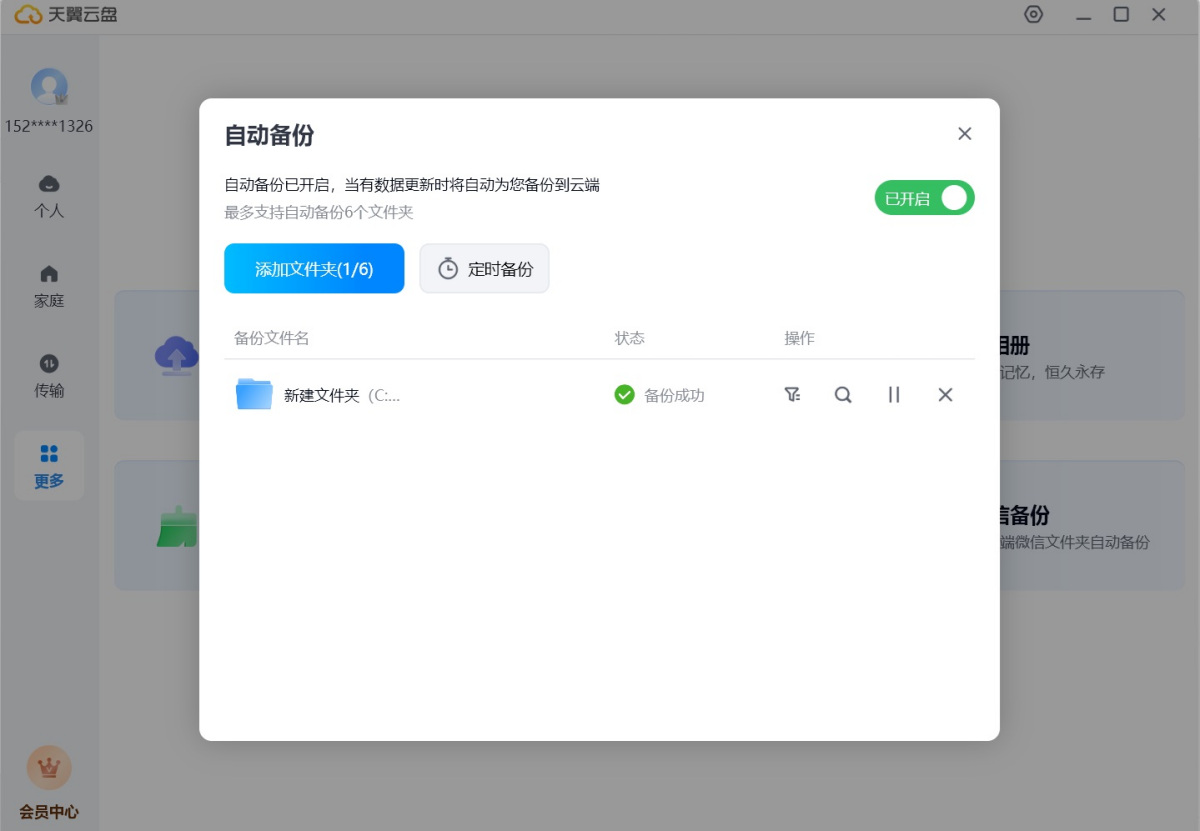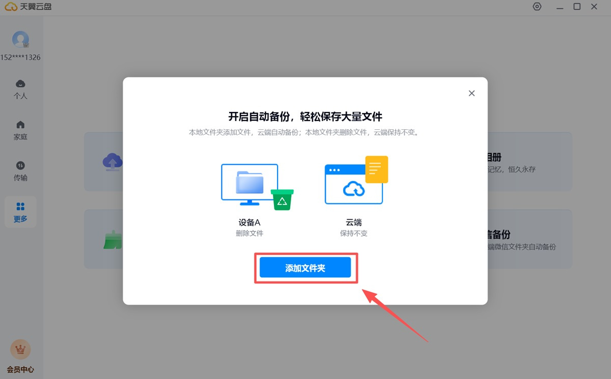 步骤1、打开天翼网盘客户端,选择左侧【更多】,点击【自动备份】