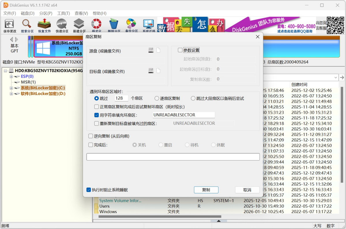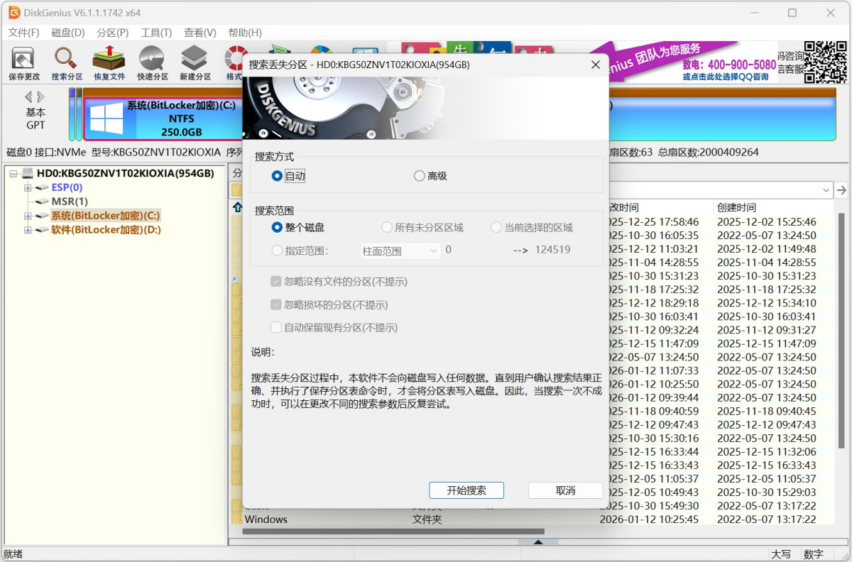 2、恢复文件功能支持扫描未解锁状态的BitLokcer加密分区。