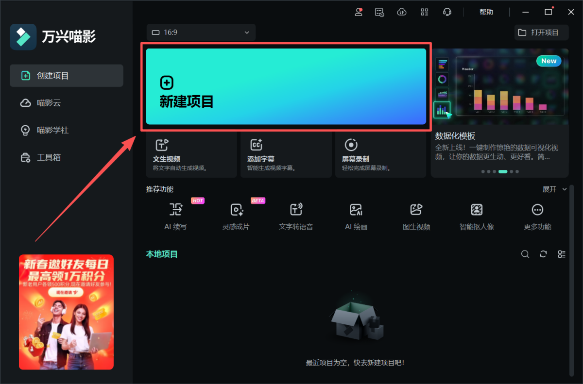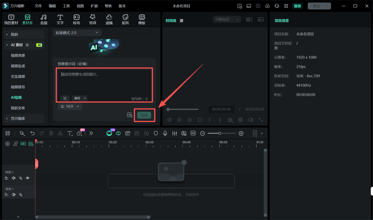 无论是关键词,还是一个简单构想,万兴喵影都能将你的创意快速转化为生动的视频内容。