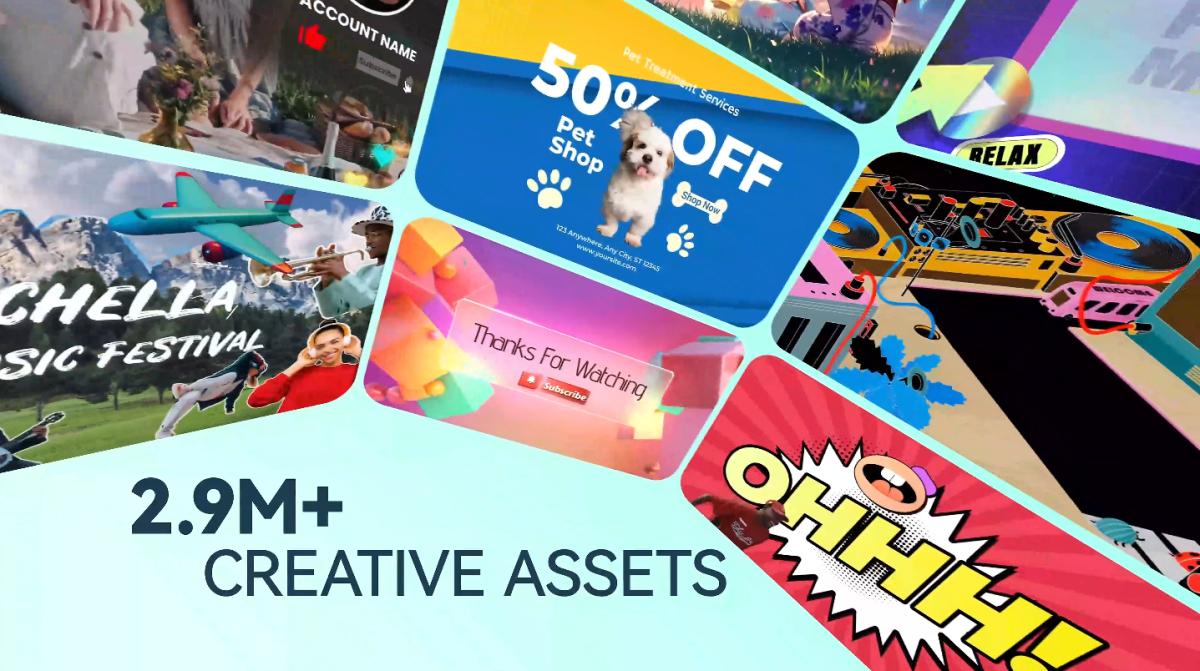 畅享数百万高品质免费素材,探索海量即用模板与丰富特效。让灵感随时迸发,为你的作品注入更多创意与可能。