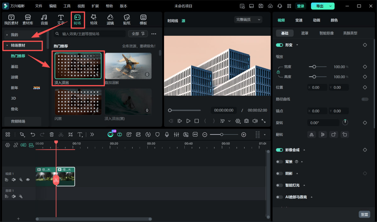 5. 优化批量应用转场特效。