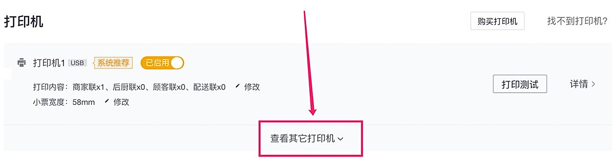 步骤5、确保能打印出测试小票的打印机处于“已启用”状态、不能打印的打印机处于“未启用”状态(通常情况下,如果您只有一台打印机,请确保只有一台打印机处于“已启用”状态)