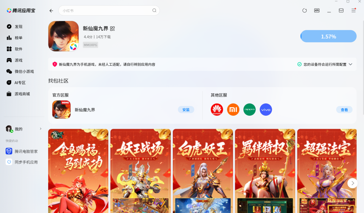 在小杜下载站下载最新安装包,按提示先安装应用宝电脑版(已安装会直接调用打开,未安装应用宝时,手机APP无法独立在电脑上运行),然后在应用宝里安装手游,安装好后,直接打开登录就能玩了。