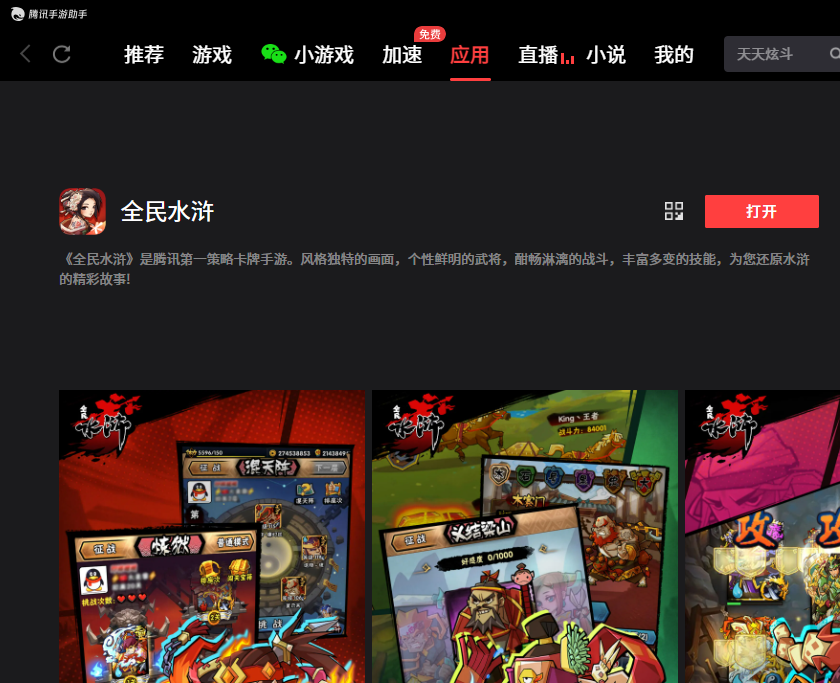 《全民水浒》是一款策略卡牌手游,风格独特的画面,个性鲜明的武将,酣畅淋漓的战斗,丰富多变的技能,为您还原水浒的精彩故事!