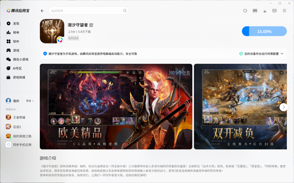 在小杜下载站下载最新安装包,按提示先安装应用宝电脑版(已安装会直接调用打开,未安装应用宝时,手机APP无法独立在电脑上运行),应用宝启动后会下载安装游戏,待安装完成后即可开始畅玩。