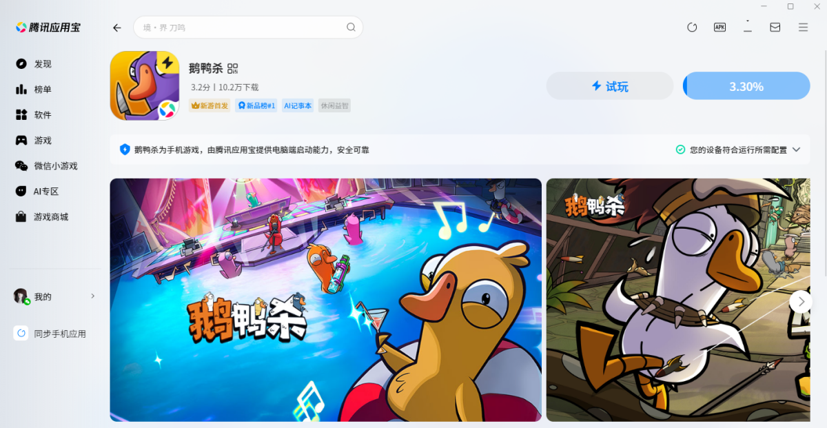 在小杜下载站下载最新安装包,按提示先安装应用宝电脑版(已安装会直接调用打开,未安装应用宝时,手机APP无法独立在电脑上运行),应用宝安装完成后,进入应用宝,继续等待软件安装,完成之后登录账户即可开始使用