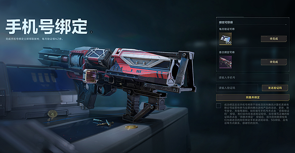 ●活动奖励:首次绑定送史诗武器沙丘之怒-红铁印记,每月完成手机验证得500NZ券