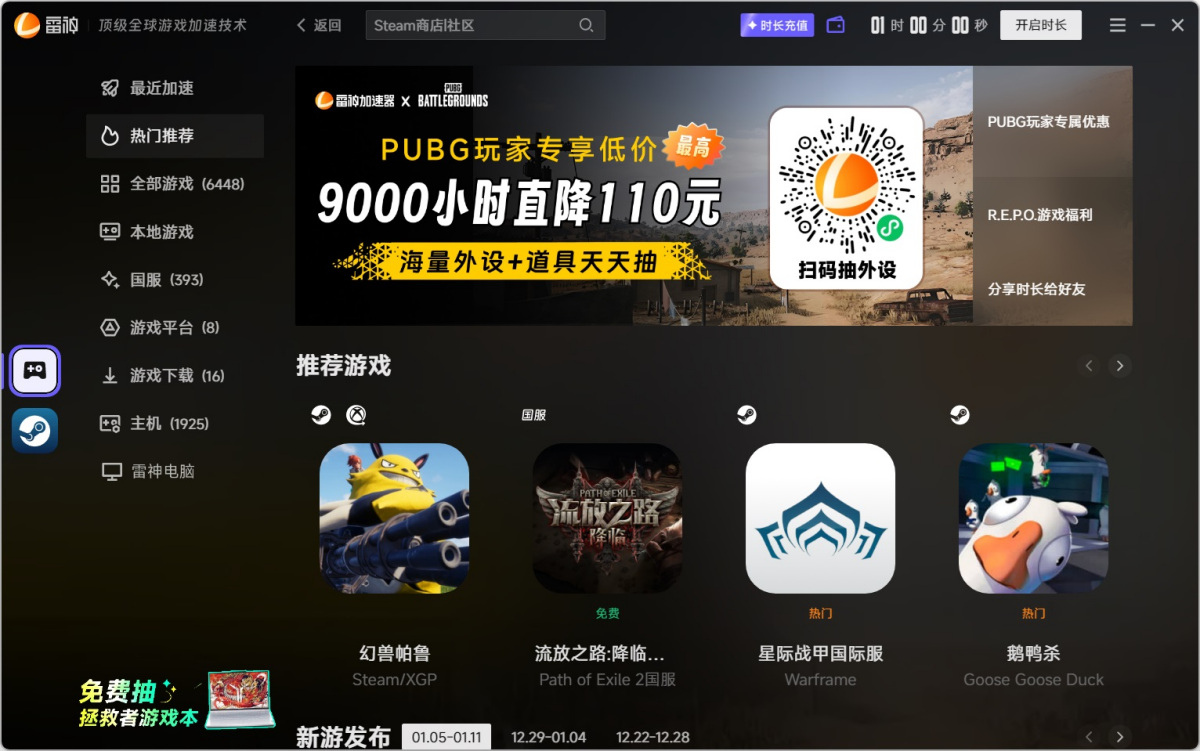 雷神加速器电脑端是一款兼容多平台、支持跨服务器、追求极致稳定加速服务的网络游戏加速器。玩家用户/网吧专用版本使用按分钟计费,不用可随时暂停时间,买一次相当于长久使用,雷神游戏加速器好用且贴心,玩家/网吧必选!