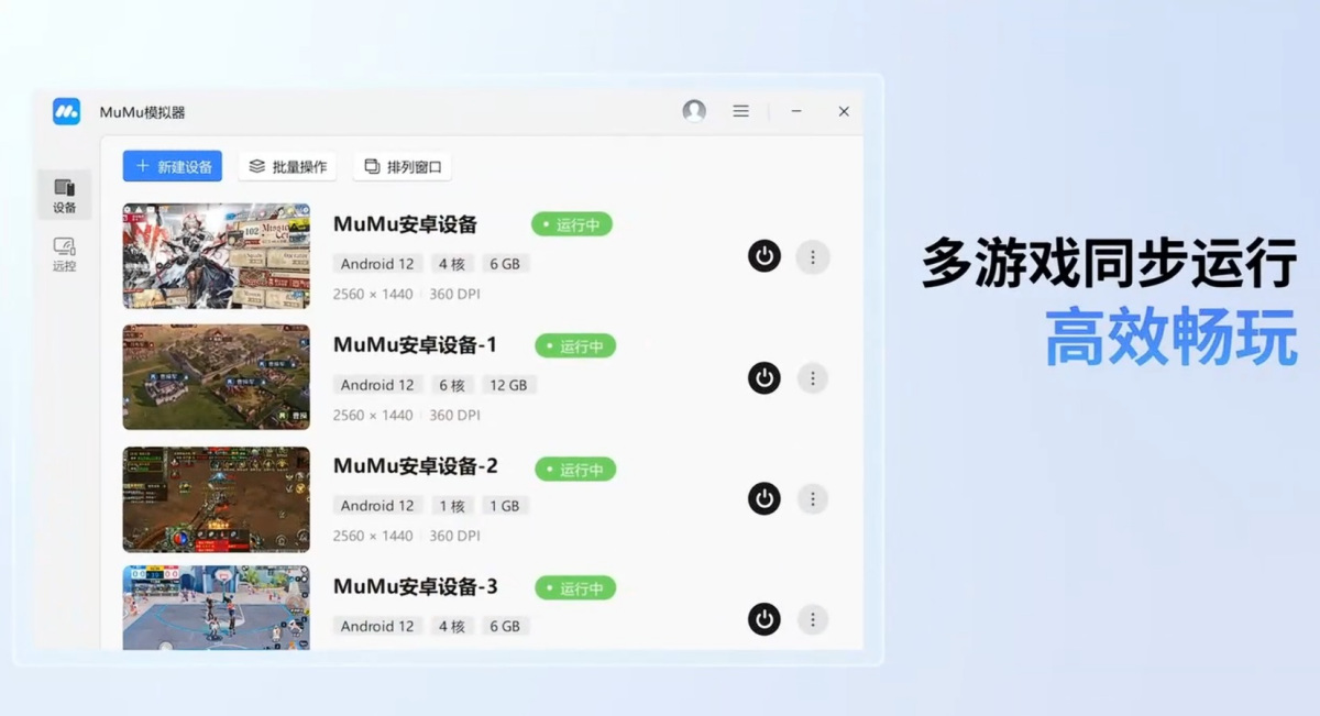 MuMu模拟器由网易出品,是一款专为手游玩家打造的免费安卓模拟器,支持在电脑上流畅运行各类手机游戏与应用。基于行业领先的安卓12系统,兼容性强、运行稳定、资源占用低,界面轻量化,操作更流畅。不仅完美支持《梦幻西游》《大话西游》《倩女幽魂》等网易经典手游,也广泛兼容《明日方舟》《阴阳师》《光遇》等热门游戏,以及陌陌、浏览器、网购等日常应用。