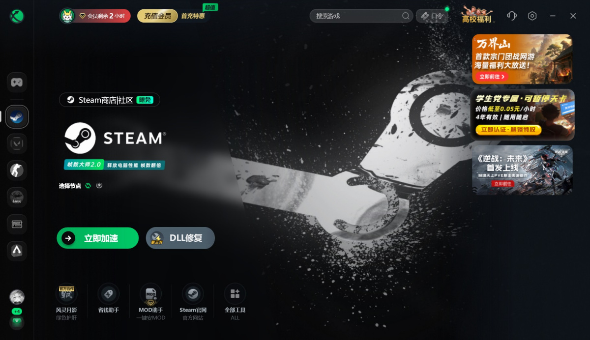 2、全面支持主流游戏:支持海量游戏,囊括大陆所有主流游戏,同时支持多种对战平台、网页游戏及港台主流游戏。