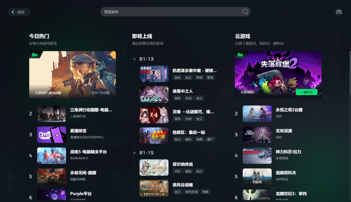 ●Apex全平台激战,智能路由告别卡顿掉线;流放之路2挑战秘境,登录/交易/刷图全部覆盖;怪物猎人荒野开启狩猎革命,快携好友来一起组队。