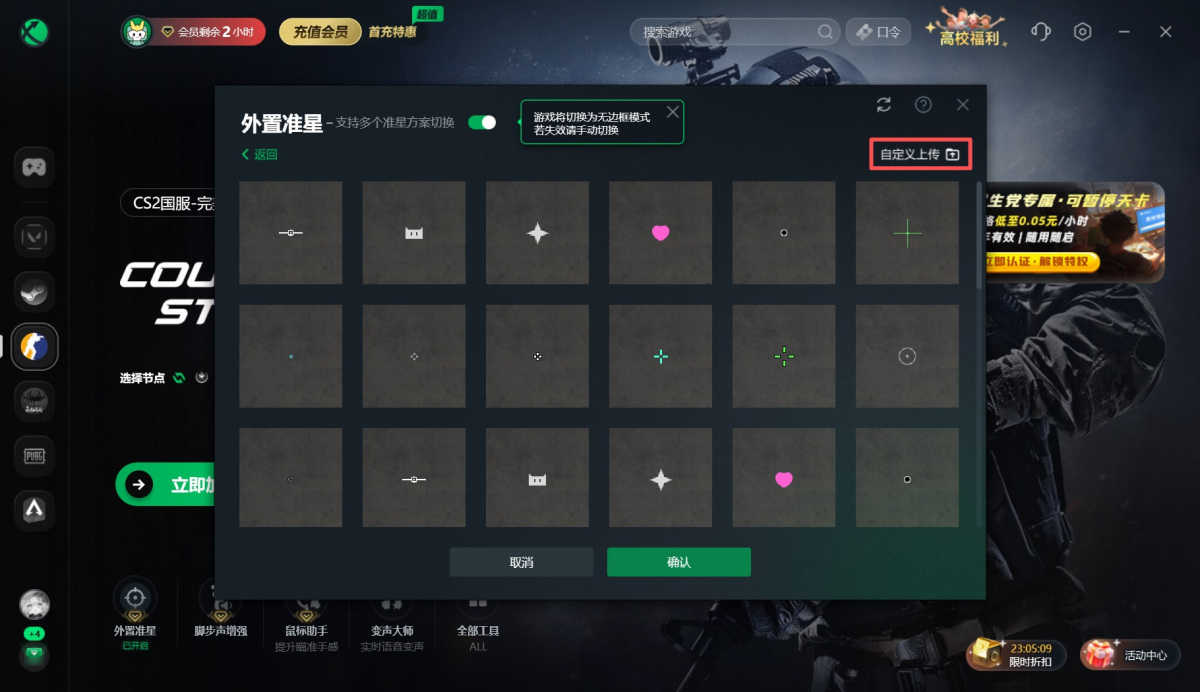 4、点击【更多】,多种准星方案任你选择,还可以自定义上传方案