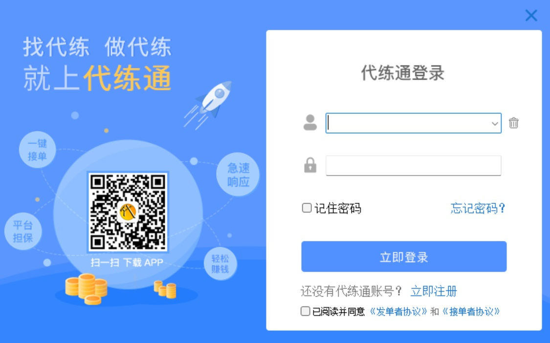 步骤1、下载并打开代练通客户端,进行账号注册/登录